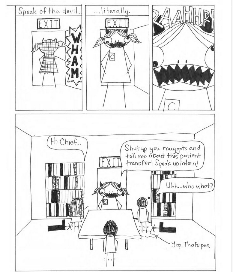 Oaklander, Mandy. Doctors on Life Support. TIME. Aug 27, 2015. (Excerpt: “The mistreatment of people at the bottom part of the clinical team–third-and fourth-year medical students, interns and residents–has been a topic in medical literature for decades, and research by Sen and Mata confirms that it’s still a problem. When asked about the toughest part of their first year as doctors, 20% of the interns in Sen’s study mentioned the ‘toxic’ culture of their program. Some people said the memory that stuck with them most was when an attending physician screamed at them and belittled them in front of their peers and made them cry.”)