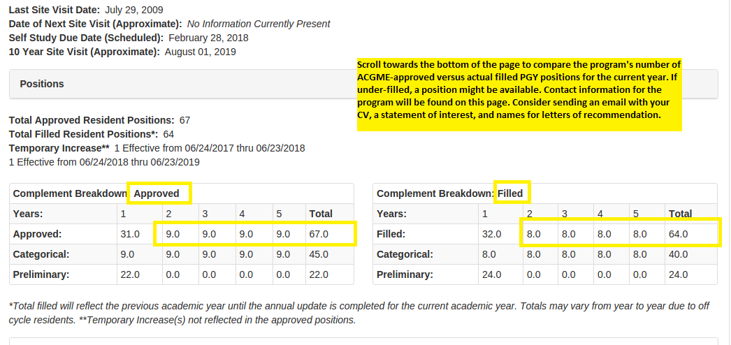 ACGME program search at the top of the home page look for unfilled positions by specialty and program.